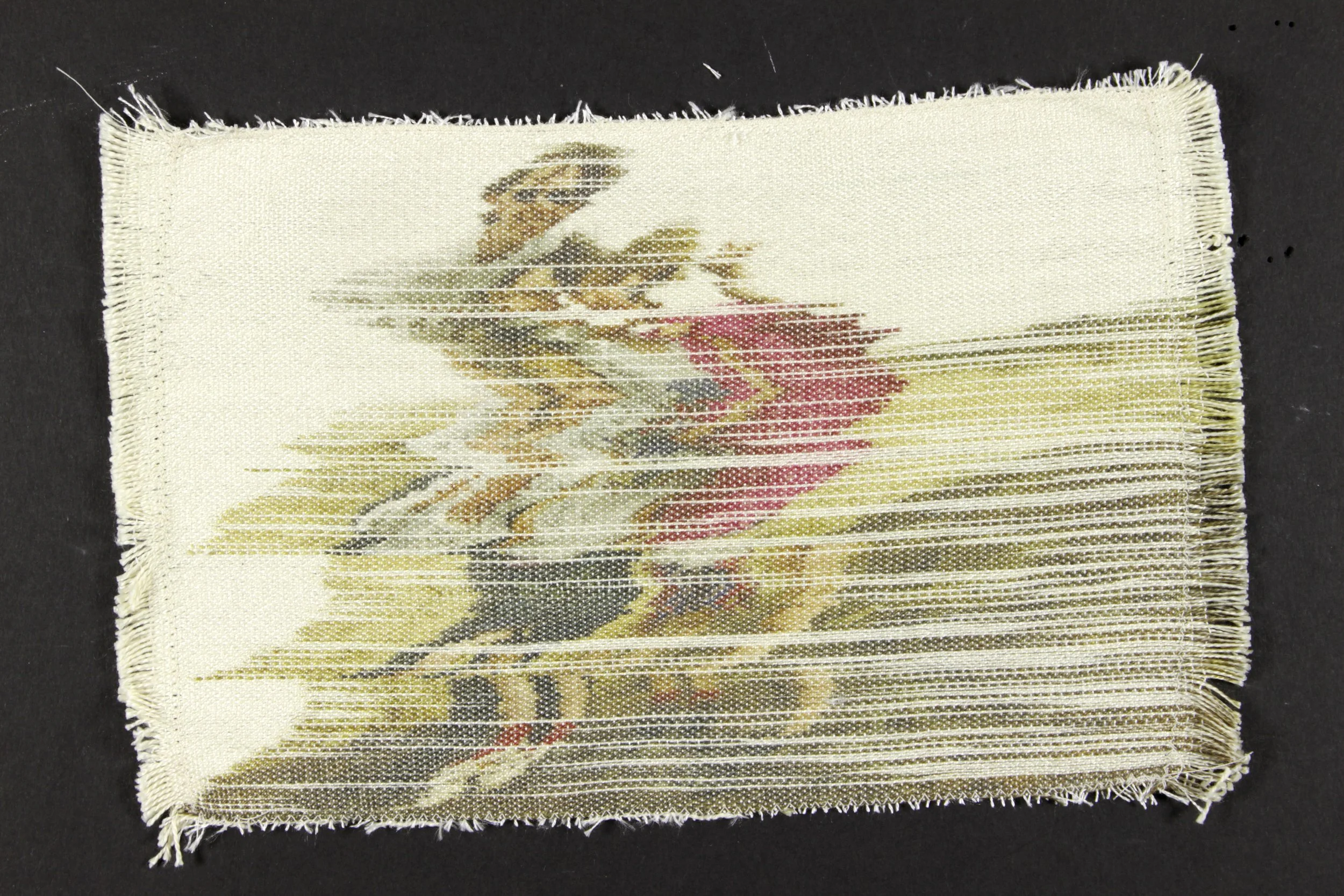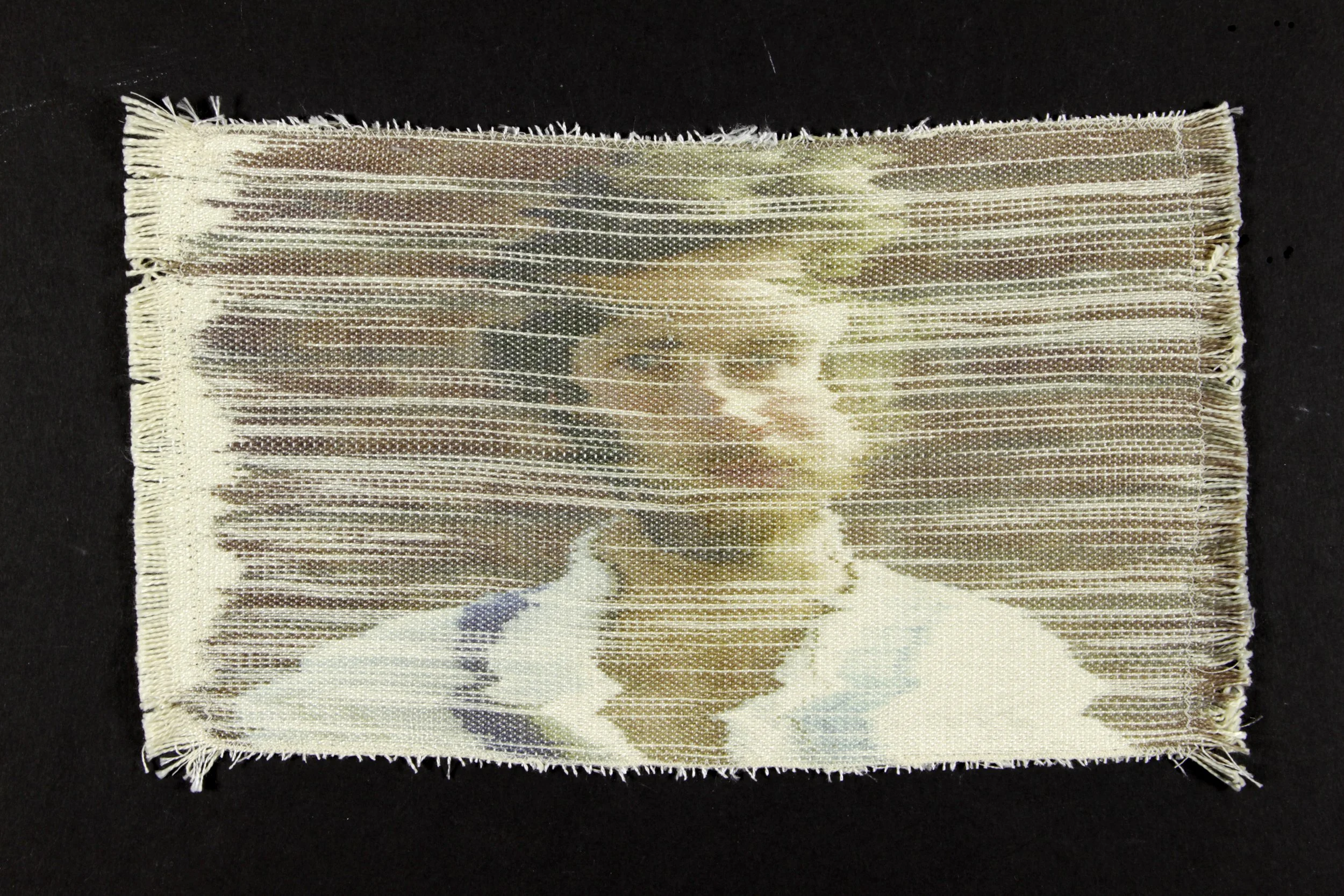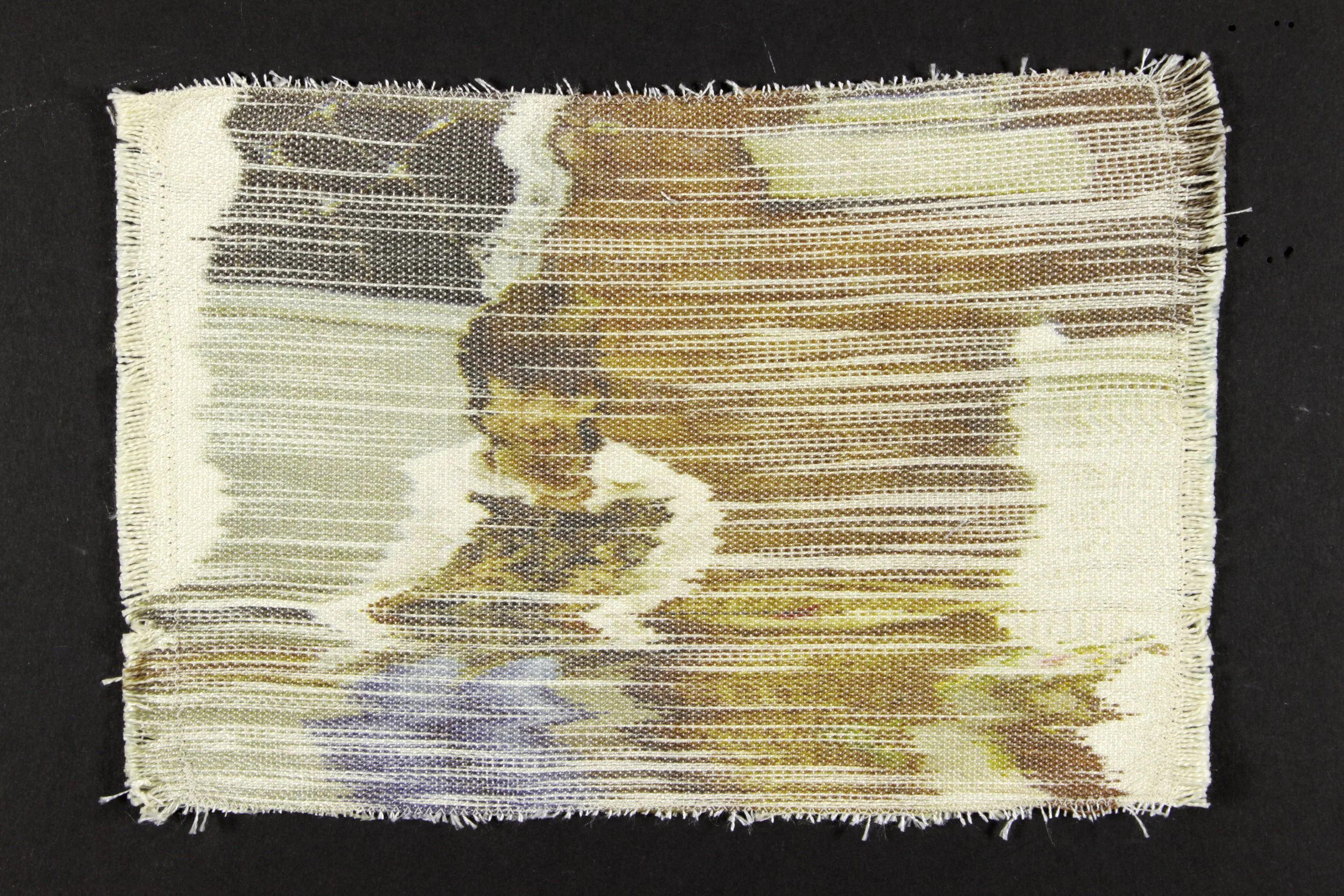 This is a series of handwoven photographs from my childhood. They were made using techniques with disperse dyes, polyester and silk. Each thread was placed carefully by hand, thinking about memory and the passage of time.